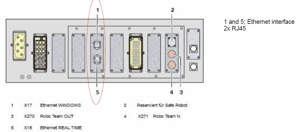 - If only the KUKA.CR ProgramCooperation software option is being used, the Ethernet interface 1x RJ45 must be used.