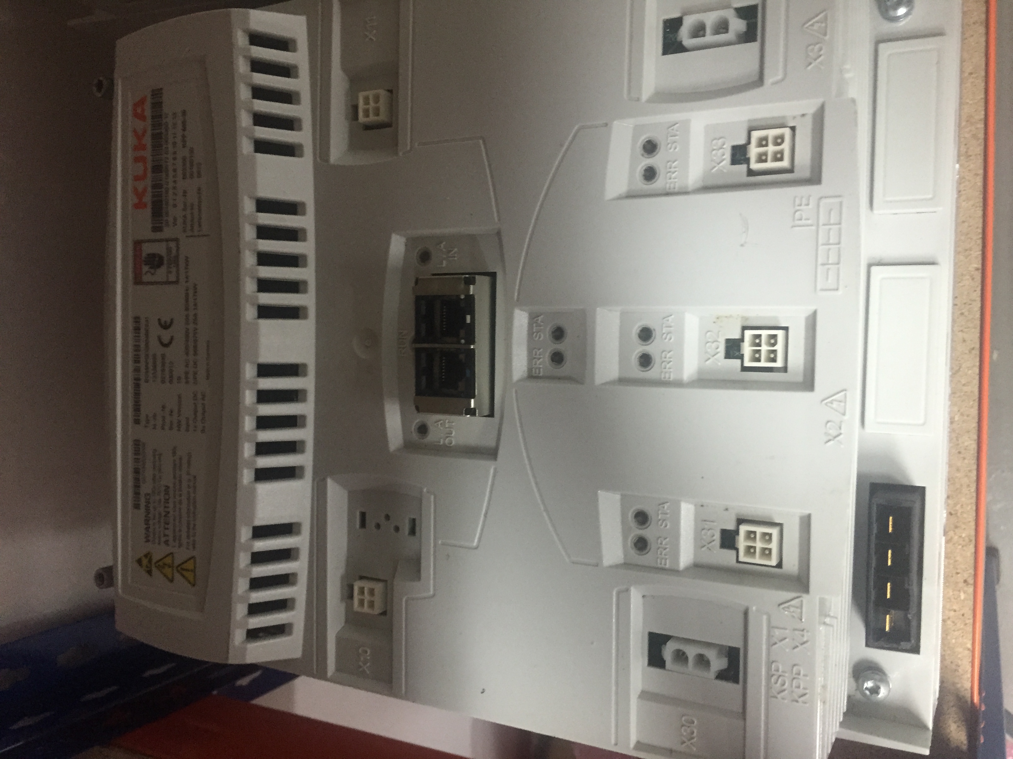 The KUKA Servo Pack (KSP) is the drive controller for the manipulator axes. There are 3 different device variants, all having the same size. There are LEDs on the KSP which indicate the operating state.