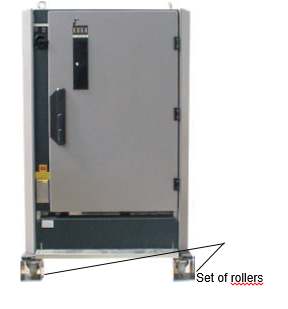 To simplify transportation, fork slots and/or sets of rollers are mounted directly on the cabinet.